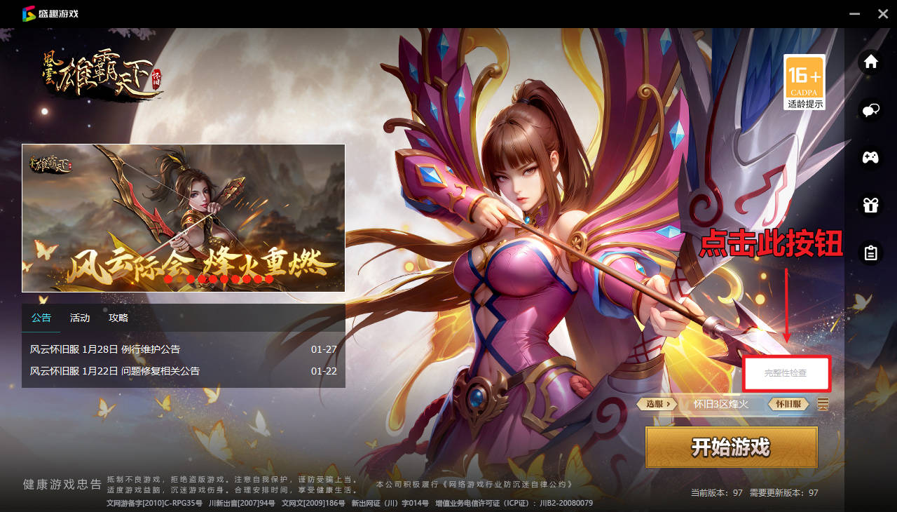 启动登陆器,找到并点击,更新/开始游戏右上方的小按钮